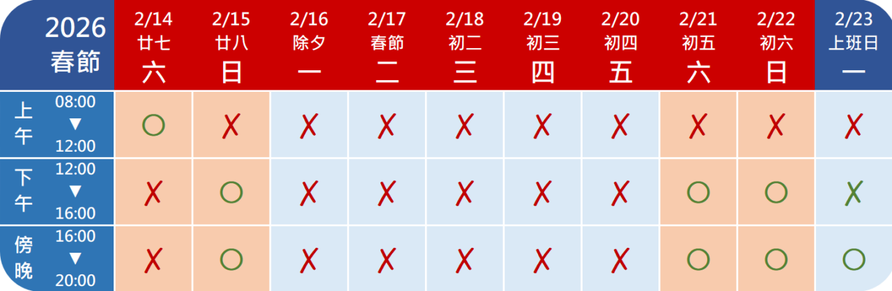最後取帳日 2/15 (廿八),並於2/21(初五)下午恢復營業。